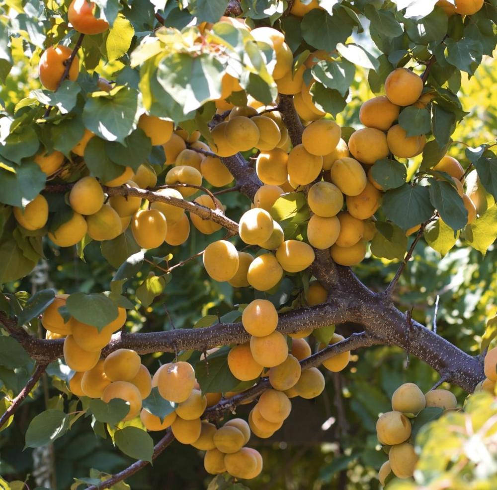 Деревья сильнорослые. В фазу плодоношения вступают на 4-м году жизни. Крона крупномеров абрикоса Гвиани мощная, ветвистая. Сорт районирован в Московском регионе.Урожайность отличная. Ярко-желтые с румянцем плоды созревают во 2 декаде августа. Слабоопушенные они имеют вес не более 20-25 г,, незначительный блеск и слегка заострены на конце. Мякоть сочная кисло-сладкая. Косточка отделяется без проблем и имеет сладкое съедобное ядрышко. Гвиани- сорт который хорошо зимует и устойчив ко многим заболеваниям.