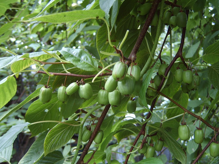 Актинидия Отличница - сорт женского типа. Быстрорастущая. Созревает в конце августа. Высота взрослого растения до 5 м. Цветки белые ароматные. Плодоносить начинает на 3-4 год. Плоды темно-зеленые с оливковым оттенком, до 2,5 см. Ароматные. Зимостойкость высокая.