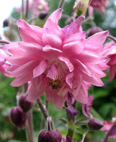 Аквилегия Пинк Барлоу – уникальный махровый сорт с бесшпорцевыми цветками. Высота растения 60 см, все побеги выровнены. Ветвление обильное, яркие цветочные шапки формируются ближе к середине лета. Аквилегия Пинк Барлоу применяется как в групповых посадках, которые лучше всего намечать в полутени, так и специально на срезку, чтобы в дальнейшем использовать во флористических композициях. Сорт Пинк Барлоу будет прекрасно смотреться в альпинарии, где его розовый цвет отлично сочетается с серым каменистым пологом, а также рядом с белыми, розовыми, фиолетовыми и даже синими цветами.