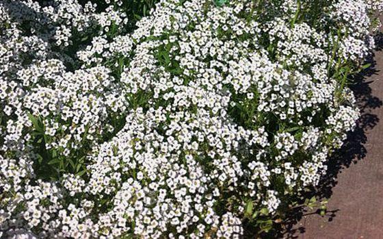 Алиссум морской TinyTim — отличный почвопокровный сорт карликового размера. Высота — до 8 см. Стебли стелются по земле, формируя плотный ковер. Листья узкие зеленые. Цветки мелкие белые, собраны в пушистые кистевидные соцветия. Цветет все лето, во время цветения соцветия практически полностью скрывают зелень.