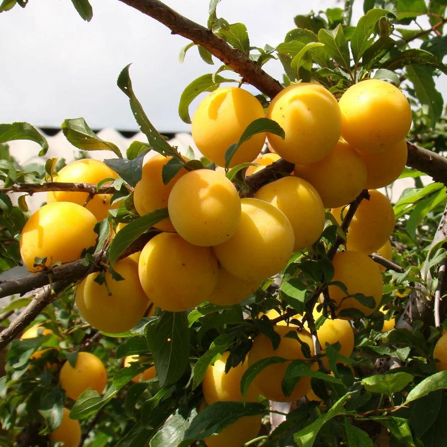 Среднерослое дерево с раскидистой редкой кроной. Сорт ранний. Урожаи очень обильные, ежегодные. Крупные овальные желтые тонкокожие плоды имеют приятный кисло-сладкий вкус. Их очень сочная плотная, волокнистая мякоть легко отделяется от косточки. Фрукты используют как в свежем виде, так и для приготовления напитков и джемов.Растения хорошо зимуют, легко переносят длительные засухи, редко поражаются садовыми вредителями и болезнями. Допускается пересадка крупномерами, при этом алыча Золото скифов быстро приживается на новом месте.
