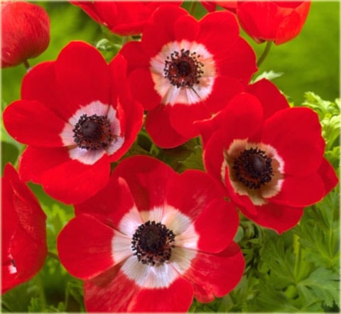 Растение Анемона Hollandia(Голландия) относится к клубневым цветам и имеет красный окрас с белой сердцевиной. Высаженные группой, они подойдут как для висадки на клумбах, так и для оформления двора. Старайтесь высаживать их в разреженной тени от дерева с неплотной кроной. Тут они проявят себя в полной мере, главное не забывать вовремя удобрять почву. Чтобы получить своевременное и пышное цветение этих цветов, стоит вкладывать в грунт клубни в конце марта-апреле при весенней посадке, и в конце сентября-начале октября при осенней. Так они успеют прижиться и укрепиться на новом месте до холодов.