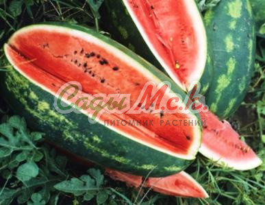 Арбуз Paladin - ранний высокопродуктивный гибридный сорт. Растение мощное и неприхотливое. Листья крупные. Плоды весом 10-12 кг, удлиненно-овальные. Корка средней толщины, с чередующимися зелеными полосами светлого и темного оттенков. Мякоть плотная, ярко-красного цвета, отличается потрясающим сладким вкусом. Страна-поставщик - Япония.