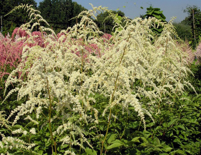 Саженцы астильбы Prof. van der Wielen понравятся садоводам, которые отдают предпочтение мягким и нежным тонам, ведь поникающие кремово-белые соцветия этого сорта выглядят удивительно грациозно и создают в саду совершенно особенную атмосферу. Весной куст украшают буро-зеленые листья, которые становятся летом ярко-зелеными. Соцветия появляются в середине лета, а период цветения продолжается около 3 недель.