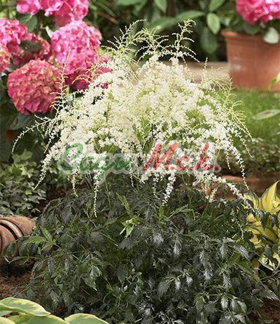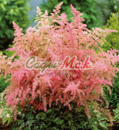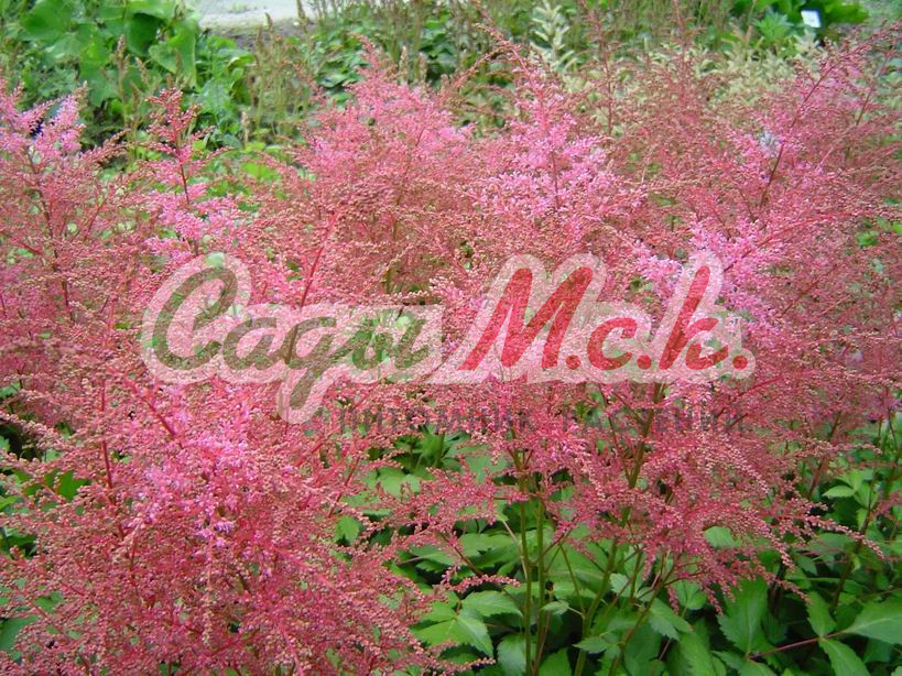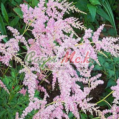 Саженцы астильбы Sрritе – компактные среднерослые кусты с нежно-розовыми поникающими соцветиями, обладающими приятным ароматом. Особенно красиво этот сорт смотрится в массовых посадках, когда изящные рыхлые соцветия создают уникальный «кружевной» эффект на блестящей темной зеленью листвы. Саженцы этого сорта замечательно растут в тени и полутени, тогда как на солнце они могут выгорать и подсыхать. Можно комбинировать эту астильбу практически с любыми многолетниками.