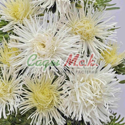 Растение высотой 60-70 см. Соцветия белой окраски 12-15 см в диаметре. Для выращивания подходят хорошо освещенные участки с плодородной суглинистой или супесчаной почвой. Астры обладают высокой холодостойкостью – хорошо переносят заморозки до -3-4°C. Выращивают чаще всего рассадным способом. Семена высевают в марте-апреле, пикируют с развитием первой пары настоящих листочков по схеме 5х5 см, в открытый грунт рассаду высаживают с середины мая до начала июня. Возможен подзимний посев астр: в конце октября на глубину 5-8 см. Сверху посевы мульчируют торфом или опилками на высоту 3-5 см. Весной в конце марта-начале апреля посевы раскрывают. Появившиеся в конце апреля всходы будут закаленными, а выросшие растения сильными, устойчивыми к заморозкам и обильно цвести. Используются для получения срезки и оформления участка.