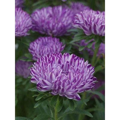 Астра Риббон Блю - яркая окраска полностью махровых, аккуратных соцветий 8 см в диаметре - неоспоримое достоинство этой астры. Ее лепестки, словно маленькие двухцветные ленточки, собранные в соцветия, создают своим великолепием клумбы, рабатки, альпийские горки, балконы.