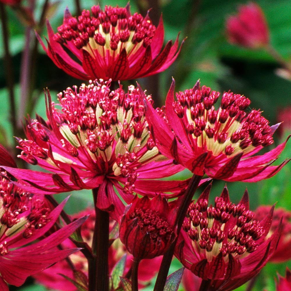 Цветки и прицветники блестящие, тёмно-красные. Цветение в июне-августе. Листья ярко-зелёные, весной с красными бликами. Высота 55 см и ширина 45 см. Идеально подходит для выращивания в контейнерах и для срезки в качестве сухоцвета. Место солнечное или полутенистое. Почва влажная, дренированная. Зона 4 (до -29°С).