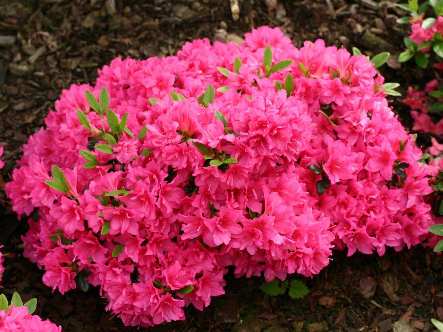 Азалия Purpurkissen - кустарник, подушковидной формы. Цветы сочного малинового цвета, многочисленные, мелковатые. В период цветения кустарник почти скрыт под обилием цветов. Листья темно-зеленые, блестящие, полувечнозеленые, с осени приобретают бронзовый оттенок. Предпочитает влажную кислую почву. Зимостоек, хорошо переносит стрижку.