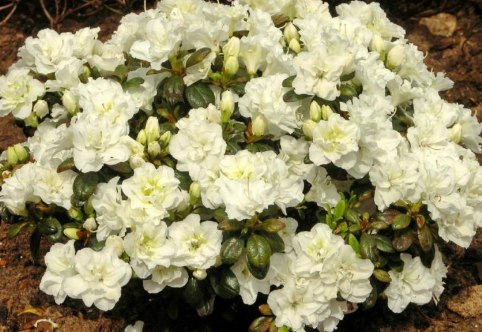 Азалия Schneeperle — куст компактной плоской формы. Достигает 30-40 см высоты, при значительно большей ширине. Листья блестящие, зеленые. Цветки очень декоративные, белые с желтым оттенком, махровые, широко раскрытые, напоминают розочки. Цветет обильно, во второй половине мая. Предпочитает тень или полутень.