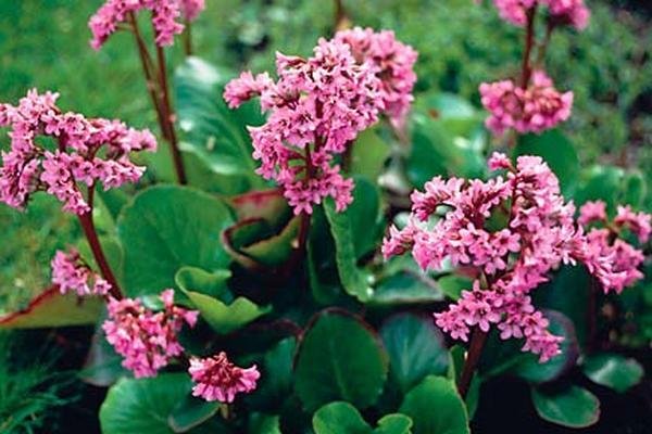 Бадан цветет с середины весны и до середины лета розово-красными цветками. Листья большие, кожистые, глянцевые, зеленого цвета с бордовым отливом овальной формы.