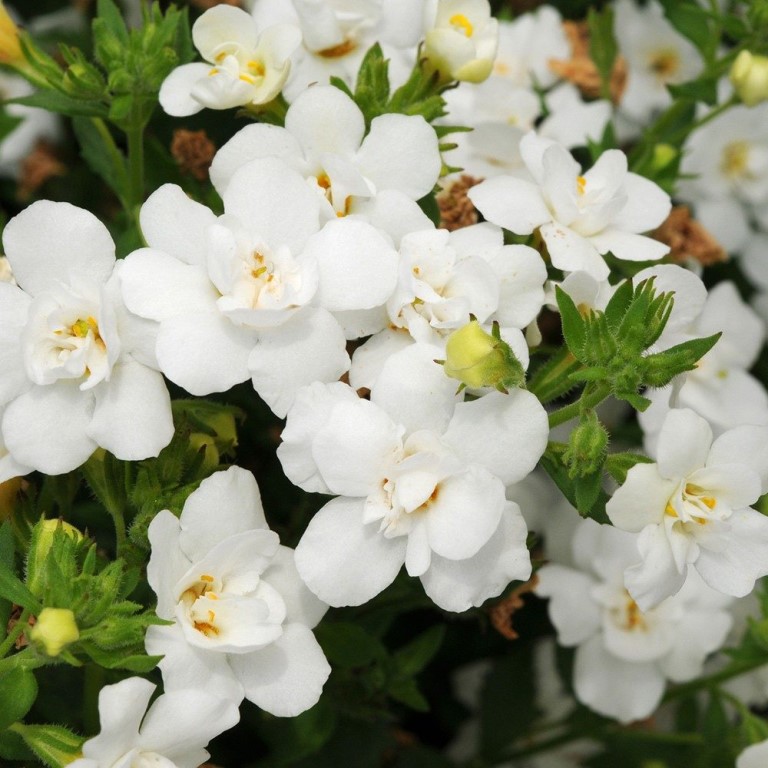 Все растение покрыто махровыми снежно-белыми цветами. Полукруглый, ветвящийся габитус этого сорта отлично подходит для подвисных кашпо, прекрасно смотрится как в солитерной посадке, так и в композиции с другими ампельными однолетниками. Бакопу часто выращивают любители оригинальных зеленых композиций для образования ширмы. В цветнике бакопа может быть высажена как фоновое растение, чтоб подчеркнуть насыщенность цвета соседних растений, она отлично сочетается с петунией, лобелией, настурцией, агератумом, фуксией.