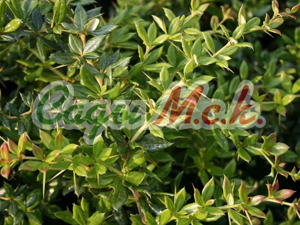 Барбарис Фрикарта Амстельвеен - высотой до 1 м. и достигает 1,5-2 м. в диаметре. В молодом возрасте крона сжатая, компактная, с довольно плотной и густой кроной позднее, раскидистая, с дугообразно изогнутыми ветвями.Растет медленно. Годовой прирост в высоту около 5-10см. в длину и ширину. Побеги желтовато-зеленые, затем зелено-бурые, старые жёлто-серые, дугообразно изогнутые. Побеги оснащены игловидными шипами - колючками 1-1,5 см. (как правила, по три под узлом). Колючки представляют собой видоизмененные листья, от которых остается подчас одна средняя жилка, ставшая колючкой(иногда трехраздельной).