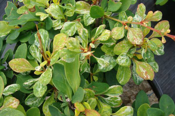 Барбарис Тунберга Boum – декоративный кустарник, в высоту достигающий всего 60 сантиметров. Декоративную ценность обрел, благодаря сочетанию зеленых с белыми вкраплениями листьев с молодыми красными побегами.Округлые листья невысокого куста в осенний сезон приобретают желтоватый, розовый или оранжевый окрас, придавая бордюрам, альпинариям, рокариям или газонам необычайно красивый вид. К почве кустарник нетребователен. Благоприятными для произрастания считаются хорошо дренируемые почвосмеси. Декоративное растение не восприимчиво к засухе, не боится зимней стужи и морозов, хорошо зарекомендовало себя как декоративный кустарник для города с интенсивным движением. Стрижку переносит безболезненно.
