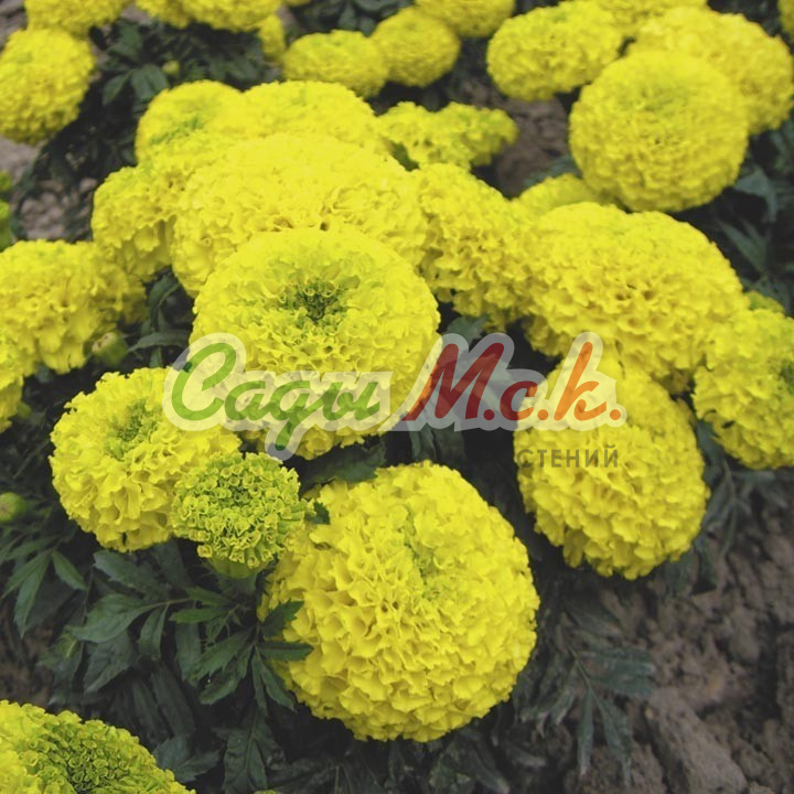 Смесь самых крупных роскошных соцветий! Кустистое выносливое растение высотой 30-35 см с огромными роскошными соцветиями 10-12 см. устойчивыми к дождю. Капли воды, не задерживаясь на лепестках, скатываются с упругих густо-махровых оранжевых, лимонных и золо- тистых цветков. Очень длительное и обильное цветение обусловлено наличием многочисленных бутонов. Идеально подходит не только для выращивания на клумбах, но и для великолепного оформления даже самых небольших вазо- нов, контейнеров. Условия выращивания: посев Март;Апрель на рассаду, в мае возможен высев в открытый грунт в районах с теплым климатом. Рассаду высаживают после угрозы весенних замо- розков. Растения, выращенные через рассаду, зацветают раньше и дольше цветут. Не требовательны к почве и влаге. Предпочитают открытые солнечные участки