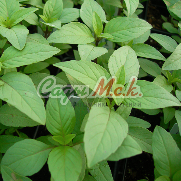 Базилик Siam Queen Thai - декоративное растение высотой до 50 см. Стебли пурпурные. Листья большие, зеленые. Соцветия лиловые, напоминают сирень. Аромат сильный и очень приятный. Сорт отличается высокой урожайностью. Может использоваться как декоративное растение. Страна-поставщик - Нидерланды.