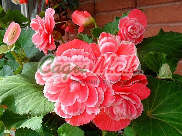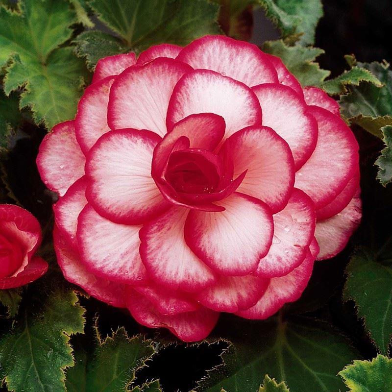 Бегония Бутон де роуз – клубневое растение высотой 25см. Красивы ее зеленые сердцеобразные листья с неровно зубчатыми краями, прекрасны и махровые цветки - белые с красной каймой, похожие на розочки, диаметром до 18см.