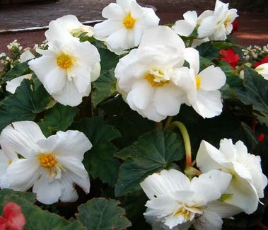Бегония сорта Reinweiss – многолетнее растение с красивыми крупными и пышными белоснежными цветами. Сочная зелень листьев является естественным фоном, на котором цветы выглядят празднично и торжественно. Может расти в открытом грунте до заморозков, после чего заносится в крытые помещения, где продолжает радовать своим цветением после непродолжительного перерыва. Помимо произрастания на клумбах, бегонии прекрасно уживаются в комнатных условиях. А в теплый период их вывешивают на балконы или выставляют в цветниках на террасу, крыльцо, вдоль садовых дорожек. Хорошо растет в обогащенной почве, любит умеренный полив.