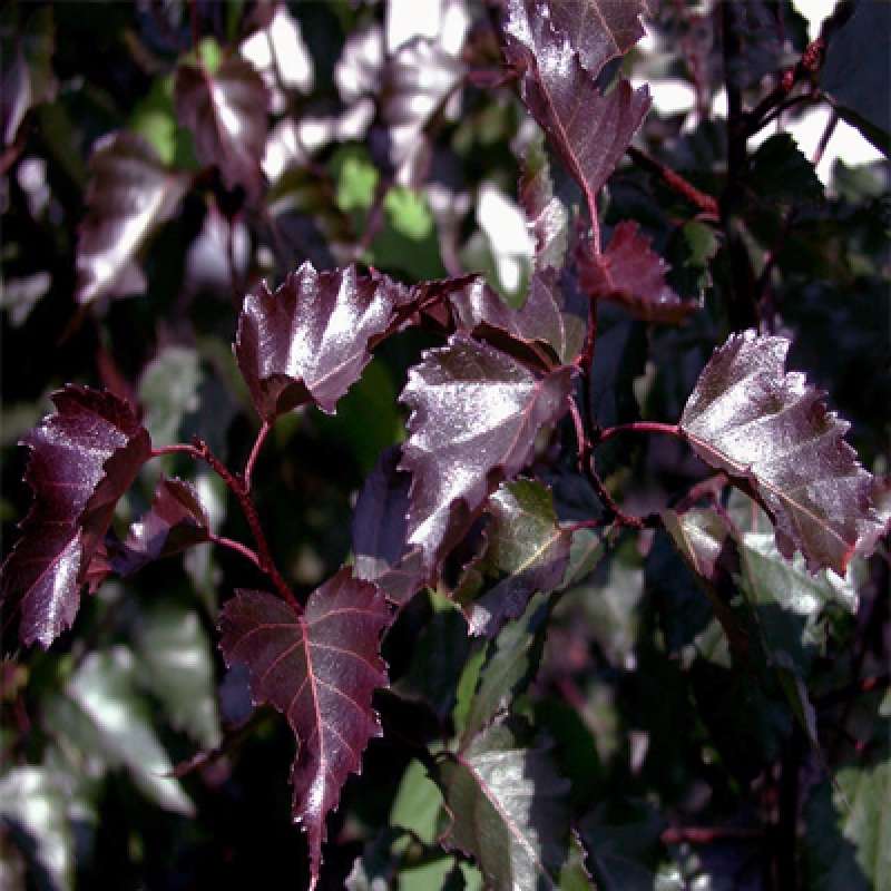 Красивое дерево высотой около 10 метров с ажурной кроной и красновато-коричневым стволом в молодости, с возрастом кора становится темно-серой или почти черной. Ветви тонкие, поникающие, темно-пурпурного цвета. Листья ромбические, плотные, пурпурные с зубчатым краем. Осенняя окраска бронзовая или светло-красная. Очень светолюбива. К плодородию и влажности почвы не требовательна, но предпочитает свежие суглинистые или супесчаные почвы. Засухоустойчива. Посадка на хорошо освещенных местах, в тени листья зеленеют. Для лучшего роста и развития, а также для более яркой окраски листьев рекомендуется посадка на плодородных почвах и подкормки удобрениями. Зимостойкость высокая, в отдельные суровые зимы возможно подмерзание однолетних побегов. Используется для одиночных и групповых посадок, для создания контрастных древесно-кустарниковых групп. Эффектна в группах с белокорыми березами