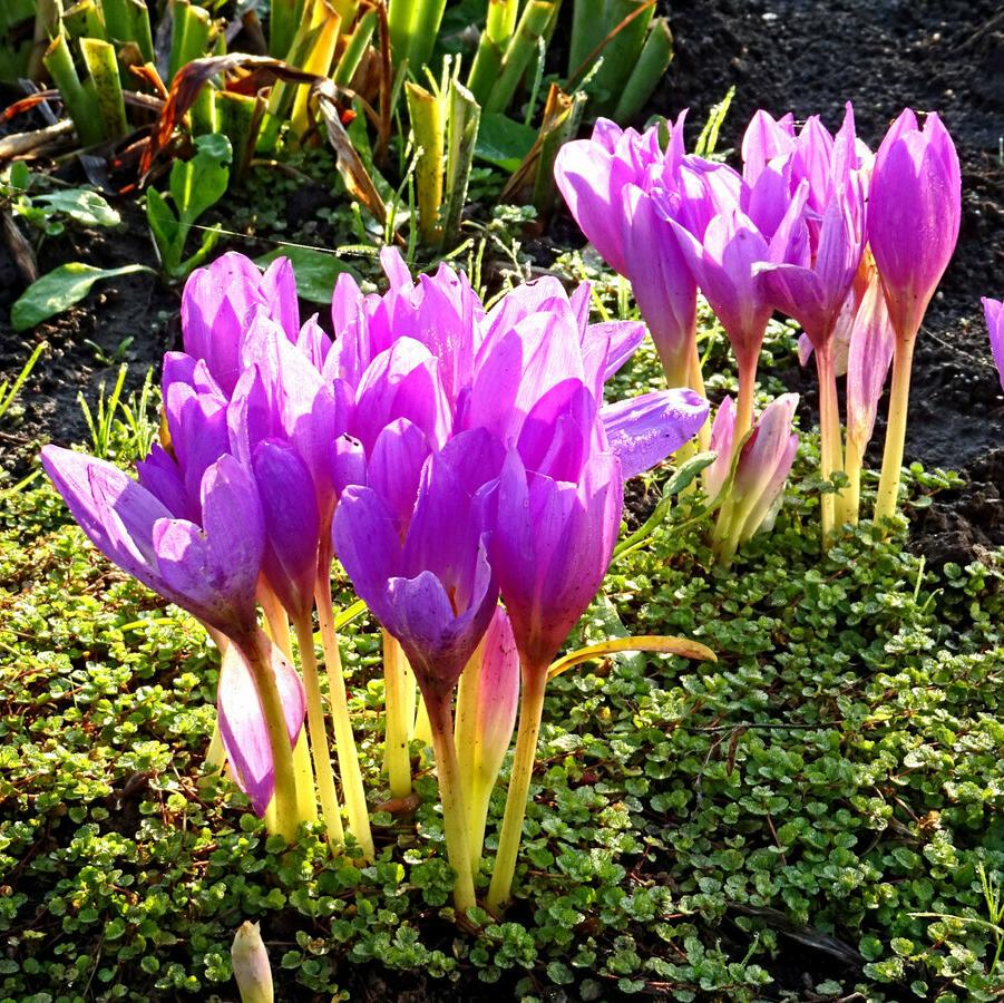 Оригинальный и редкий колхикум, цветущий в конце зимы – начале весны, с полным правом можно причислить к первоцветам. Его родина – каменистые и песчаные горы Венгрии, Югославии, Албании и Болгарии. Стоит снегу чуть подтаять, как тут же на проталине распускаются чашевидные цветки 4 см в диаметре из сиреневого прозрачного льда. Вслед за ними появляются плотные сине-зелёные листья с опушёнными краями. В европейских садах цветы распускаются раньше, в конце зимы. Цветок для раннего и сказочного начала весны!