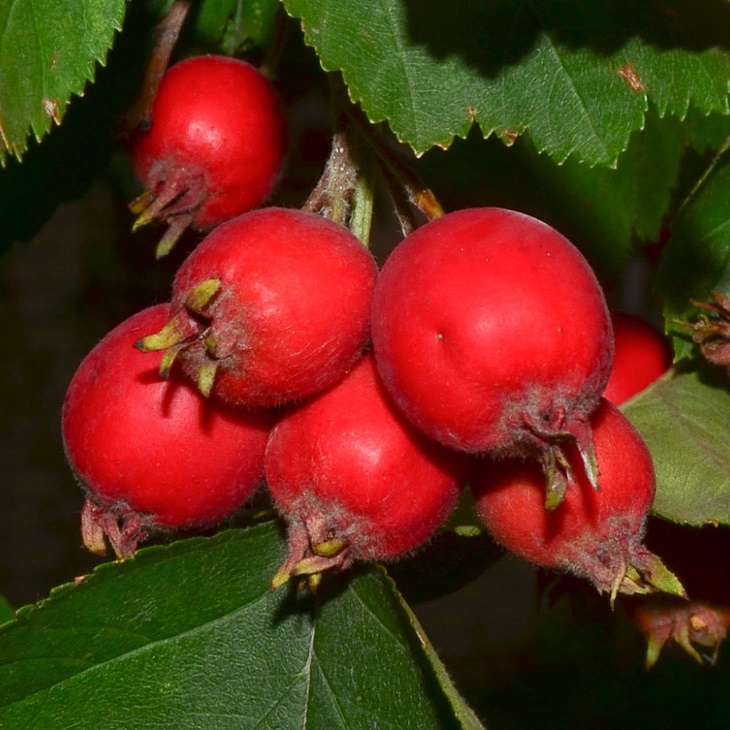 Боярышник Арнольда - небольшое многоствольное дерево, высотой и диаметром кроны 6 м, с шершавой сероватой корой и довольно большими почти ромбическими листьями. Долговечный - 120 лет. Крона шаровидная, средняя. Листья овальные, светло-зеленые, от 4 до 5 см. Цветки плоские, округлые, белые, диаметром 1 см. Плоды крупные, мясистые и вкусные, ярко-красно-оранжевые, съедобные.