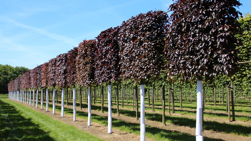 Дерево с округлой рыхлой кроной может достигать 20-метровой высоты, но в Подмосковье растет кустом, медленно. Весь вегетационный сезон отличается блестящими темно-пурпурными листьями с волнистыми краями. При распускании листья необыкновенно красивого нежного розово-оранжевого цвета. У него гладкая светло-серая кора. Одна из ценнейших пород для зеленого строительства. Ее используют для создания мощных групп и массивов в парках и лесопарках, в одиночных посадках на полянах. Образует прекрасные стриженные живые изгороди и стены. В культуре очень давно. Удачно сочетается с пихтой белой, сосной крючковатой, елью обыкновенной, тисом ягодным, тсугой канадской, можжевельниками, березами, платаном, грабом, рябинами, дубами, лещиной, бересклетами, розой ругозой и др. Бук лесной может расти и в полутени, и на солнце