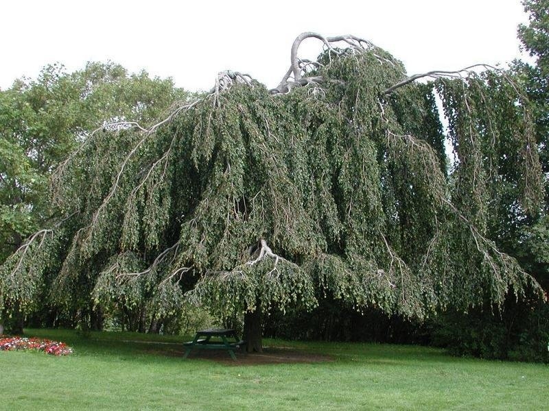 Одно из самых красивых деревьев с плакучим габитусом. Крона широкая, изменчивая, живописная, часто приобретает фантастическую форму. Достигает выс. 15-25 м и похожей ширины. Листья зелёные, блестящие, осенью жёлтые или красно-коричневые. Место выращивания солнечное, прикрытое. Предпочитает плодородные, свежие почвы, с постоянным уровнем фунтовых вод. Лучше всего высаживать отдельно среди большого, открытого пространства