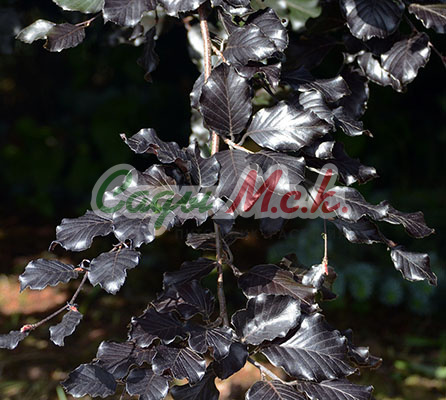 Листья довольно крупные, 8-10 см длиной, жесткие, эллиптические в очертаниях, пурпурно-красные весной и пурпурно-зеленые летом. Осенью они становятся коричнево-красными.