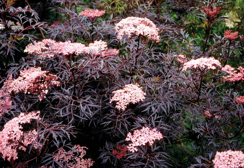 Black Lace® - это большой, прямостоячий, листопадный кустарник, украшенный поразительной кружевной листвой из глубоко рассеченных пурпурно-черных листьев с весны до осени. В начале лета здесь выставлено изобилие пахнущих лимоном зонтиков, упакованных в кремово-розовые цветы. . В начале осени созревают плоды, красно-черные ягодки. Они съедобны и подходят для приготовления компота или варенья. Они красиво контрастируют с темными листьями и уступают место пурпурно-черным ягодам в конце сезона. Жесткий и легко приспосабливаемый, это потрясающий кустарник для смешанной границы, живой изгороди или ширмы