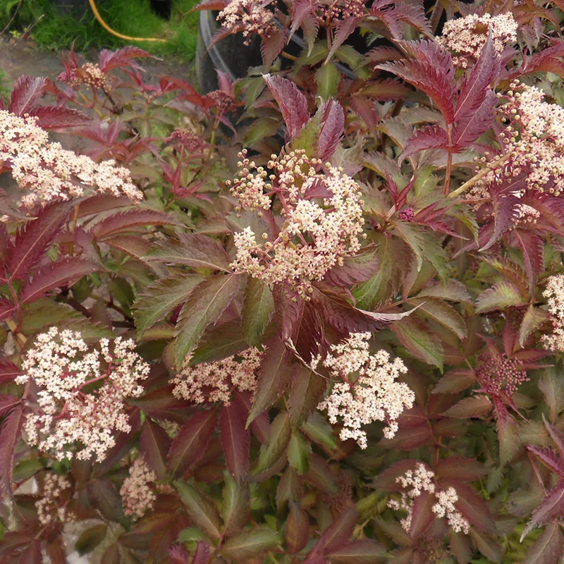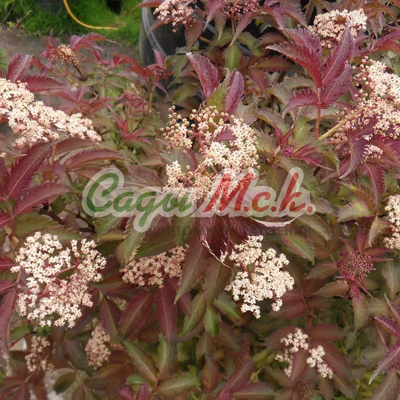 Куст компактный, высотой 250 см и шириной 150 см. Растёт быстро. Молодые весенние побеги розово-красные. Листья зубчатые по краям, в начале лета меняют цвет на жёлто-зелёный, а осенью будут розово-красными. Бутоны розовые. Цветки белые и бледно-розовые, в плоских соцветиях. Аромат сладкий. Цветение в конце мая - начале июня. Плоды мелкие, чёрные, съедобные, очень сочные, созревают в августе-сентябре.