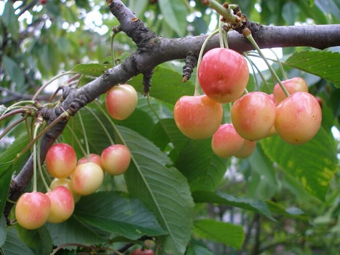 Черешня Franz Josef - дерево среднерослое с крупной удлиненно-яйцевидной листвой и широкоовальной формой кроны. Удовлетворительная зимостойкость. Высокоурожайный, достаточно устойчивый к болезням, наиболее транспортабельный сорт. Плоды широкоовальные с мелкой бороздкой брюшного шва посредине плода, с другой стороны бороздка едва заметна. Кожица желтая, с ярким румянцем практически по всей поверхности плода. Масса плода 5 – 6,5 г. Мякоть плотная, сочная, сладкая с кислинкой, с бесцветным соком. Созревание в конце июня.