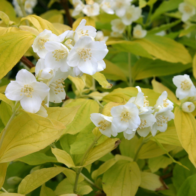Саженцы чубушника Aureus могут вырасти до двух метров в длину. Взрослые кустарники будут иметь шарообразную форму. Весной листья у куста крупные и имеют ярко-желтый оттенок. Летом же они становятся зелеными с желтоватым оттенком. Растение очень подходит для создания живых изгородей и обрамления бордюров, его также можно посадить с многолетниками, для создания композиции. Цветы Aureus белого цвета, во время цветения они очень сильно пахнут. Время цветения - начало лета (июнь), продолжительность - примерно две недели.Саженцы этого куста зимостойки и неприхотливы. Рекомендуется сажать крупномер Aureus на солнечную сторону, так как в тени листья становятся блеклыми.