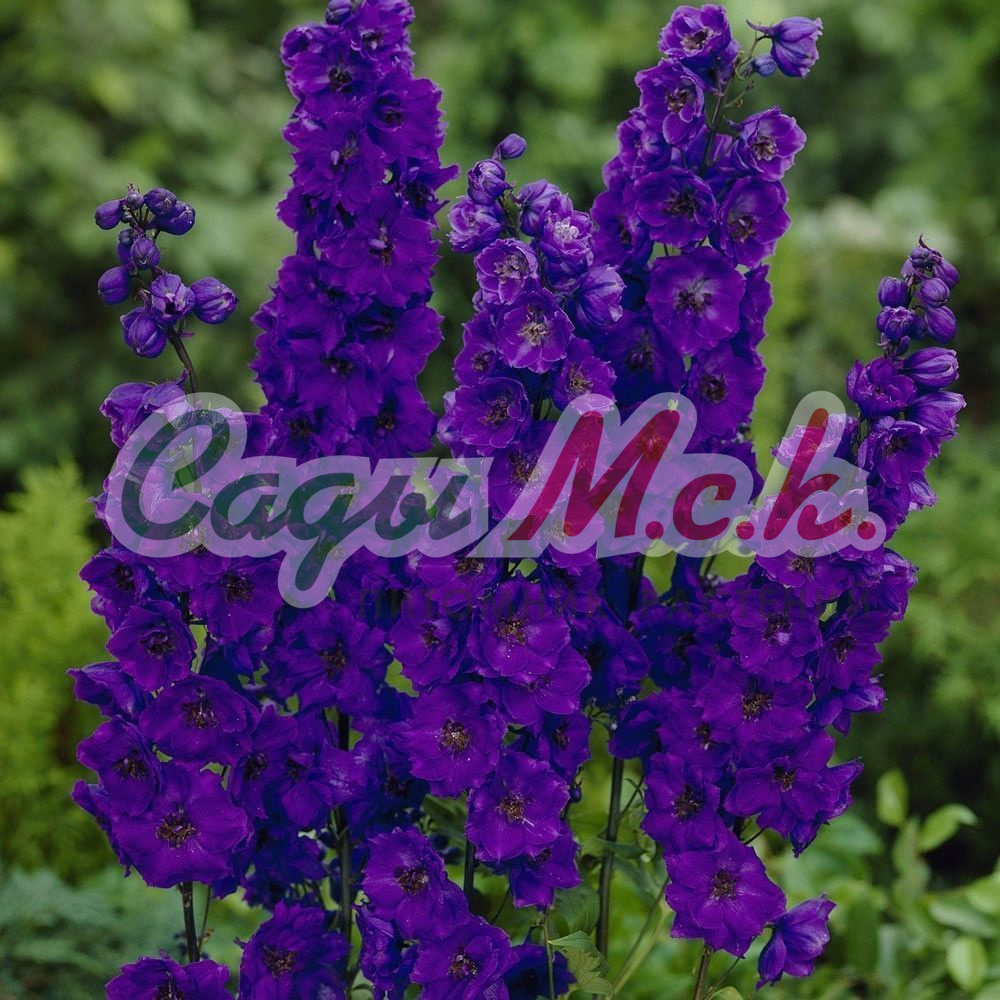 Многолетнее растение семейства Лютиковые, высотой до 2м с плотными кистевидными соцветиями темно-фиолетового цвета с черными сердцевинами. Цветет в июне-июле, вторичное цветение – в августе-сентябре, отцветшие соцветия обрезают для полноценного второго цветения. Хорошо растет на освещенных участках с легким затенением в полуденные часы. Предпочитает плодородные суглинистые и супесчаные, умеренно влажные почвы. Семена высевают осенью в открытый грунт или в марте на рассаду, в мае растения высаживают на постоянное место с расстоянием 35-40 см. Используются в групповых и одиночных посадках, для получения срезки. В срезанном виде стоят в воде до 10-12 дней. Все части дельфиниума ядовиты.