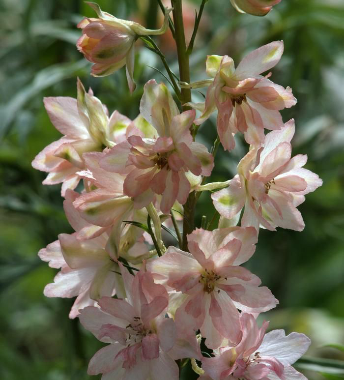 Дельфиниум гибридный Принцесс Кэролайн: Один из самых красивых сортов. Изящные махровые цветки уникального кораллово-лососевого оттенка! Для ажурных границ в пастельных тонах. Высокие пышные соцветия украсят не только клумбы, но и изысканные букеты!