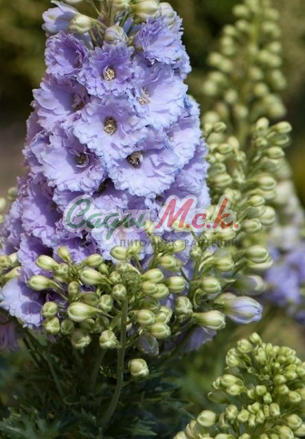 Новозеландские гиганты — признанные мировые законодатели селекционной моды среди дельфиниумов. Исключительные декоративные качества, зимостойкость, долговечность и неприхотливость, сделали эти сорта самым желанным приобретением многих профессионалов и садоводов-любителей. Растения рослые, более 2 м, с прочными здоровыми цветоносами, но все же нуждается в опоре. Необыкновенно крупные махровые цветки сложного, словно переливающегося фиолетового цвета, собраны в плотное, буквально набитое соцветие. Первое цветение происходит на второй год после посева, в июне-июле. Повторное — в августе. Дельфиниумы предпочитают солнечные, защищенные от ветра участки с плодородными нейтральными почвами и хорошим дренажем (не выносит переувлажнения). Семена проращивают, слегка присыпав почвой (лучше стерильной). Для получения дружных всходов, посевы рекомендуется выдержать в холодильнике в течение недели. Посевы оберегают от сквозняков и поливают с осторожностью, из распылителя. Всходы появляются при температуре 18-24ºС (не допускайте повышения температуры выше 26ºС) через 10-15 дней. Окрепшие растения высаживают весной в открытый грунт, после окончания заморозков, на расстоянии 0,5-1,0 м. Нежелательно высаживать растения вплотную к высоким стенам без опоры, т.к. сильный ветер может сломать стебли. Новозеландские гиганты морозостойки, отлично переносят даже суровые зимы без укрытия.