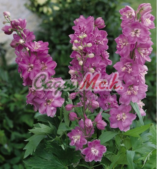 Очарование пышного и яркого цветения нежно-розовых, малиново-розовых и розово-красных с темным глазком красавцев-цветков сделало дельфиниум одним из самых популярных среди садоводов-любителей. Восхищает своим цветением в июне-июле и августе-сентябре, отцветшие соцветия обрезают для полноценного второго цветения. Великолепно смотрятся в групповых и одиночных посадках, придают высоту палисадникам и цветникам. Используют для получения срезки, в воде стоят до 10-12 дней. Растение многолетние, высотой до 2 м, прекрасно себя чувствует на освещенных участках с легким затенением в полуденные часы, на плодородных, умеренно влажных почвах. Семена высевают осенью в открытый грунт или в марте на рассаду, слегка присыпав почвой (лучше стерильной). Для получения дружных всходов, семена рекомендуется выдержать в холодильнике в течение недели. Всходы появляются при температуре не выше +15оС через 20-23 дня. В мае окрепшие растения высаживают на постоянное место с расстоянием 35-40 см. Все части дельфиниума ядовиты!