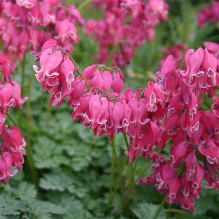 Дицентра красивая Кинг оф Хартс - низкорослый, длительно цветущий сорт с розово-пурпурными цветками. Дицентра - дымянка, разбитое сердце - растение семейства Маковых. Родина - Северная Америка и Восточная Азия. Очень изящный многолетник, высотой до 100 см. Листья перисто-рассеченные, сизовато-зеленые.