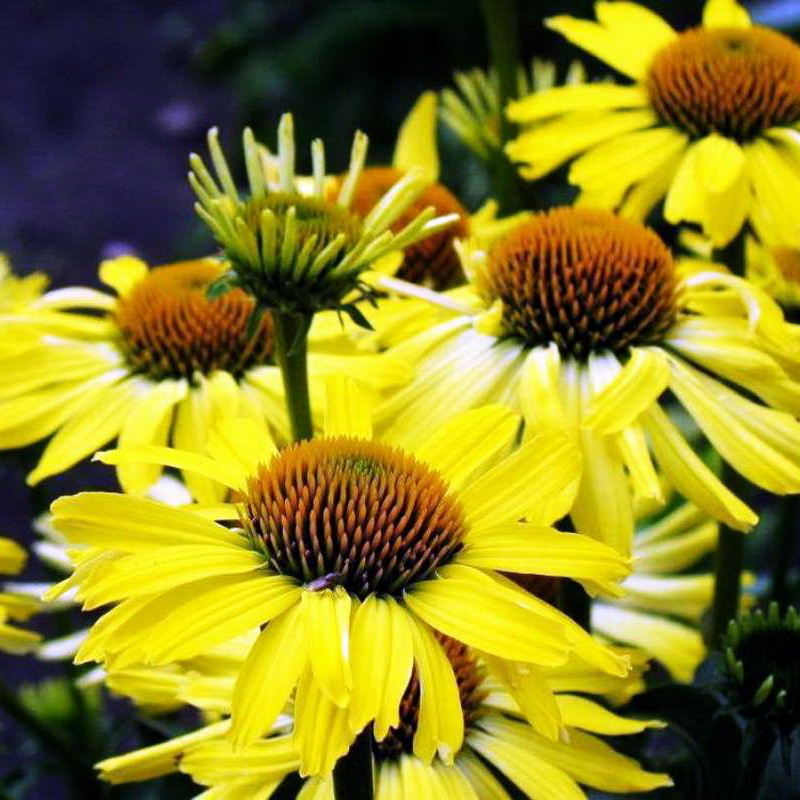Эхинацея пурпурная Клеопатра (Cleopatra) быстро разрастается. Высота взрослого растения от 45 до 60 см , ширина до 40 см. Цветочки многолетника имеют ярко-желтый цвет, которые неравномерно распределяется по лепестку. Ближе к серединке оттенок становится бледно-желтым. Серединка пышная и окрашена в темно-желтый цвет.