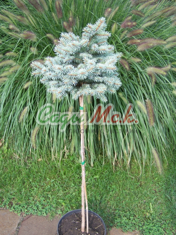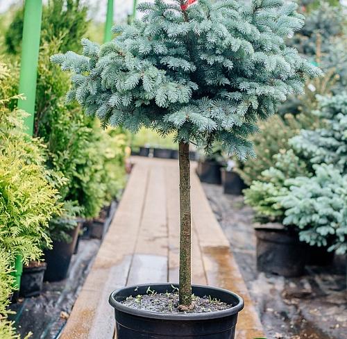Ель шаровидной формы, широкая, цвет насыщенно голубой. Это одна из лучших разновидностей колючей ели