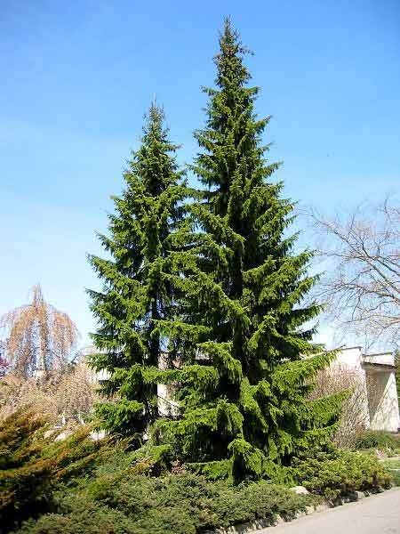 Взрослое дерево достигает в высоту 30 м, а в некоторых местностях и 55 м. Диаметр кроны обычно не превышает 3-4 м. Приземистые ветви свисающей формы, остальные – горизонтальные. Крона заостренная, напоминает стрелу. Крупномер ель сербская, или балканская отличается двуцветной серо-зеленой хвоей. Ее длина может достигать 2 см, а ширина – 0,2 см. Сорт неприхотлив в выращивании, поэтому культивируется по всей Европе и до Урала. Ель теневыносливая, не боится сквозняков.