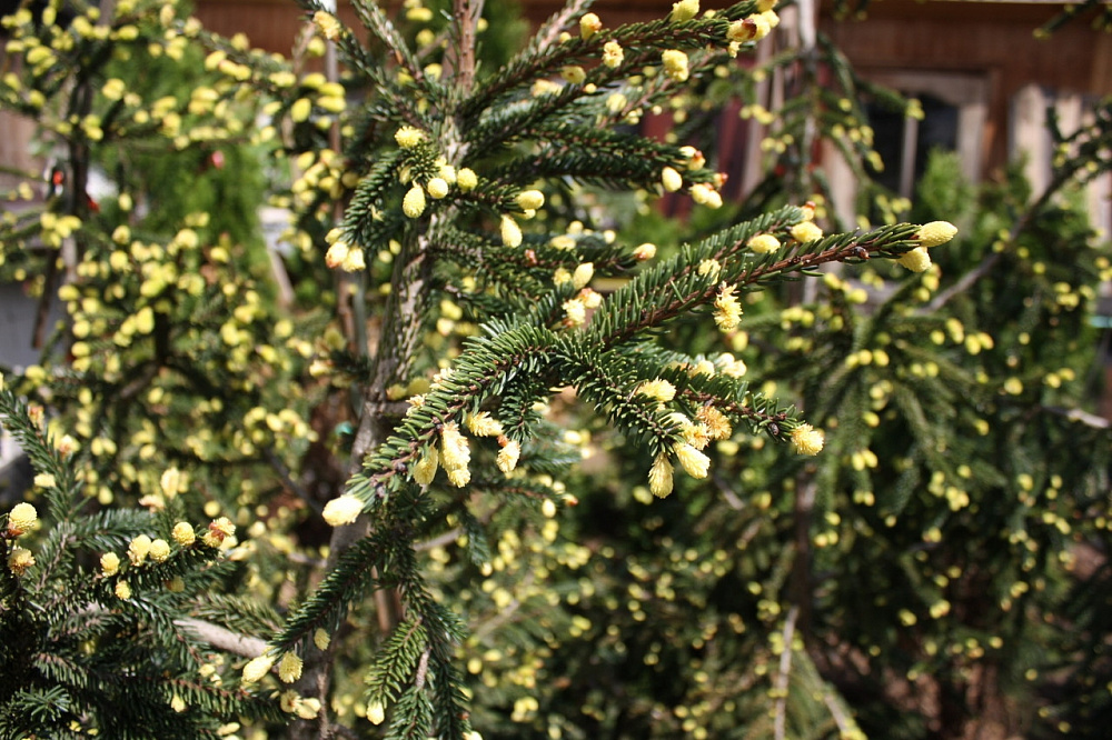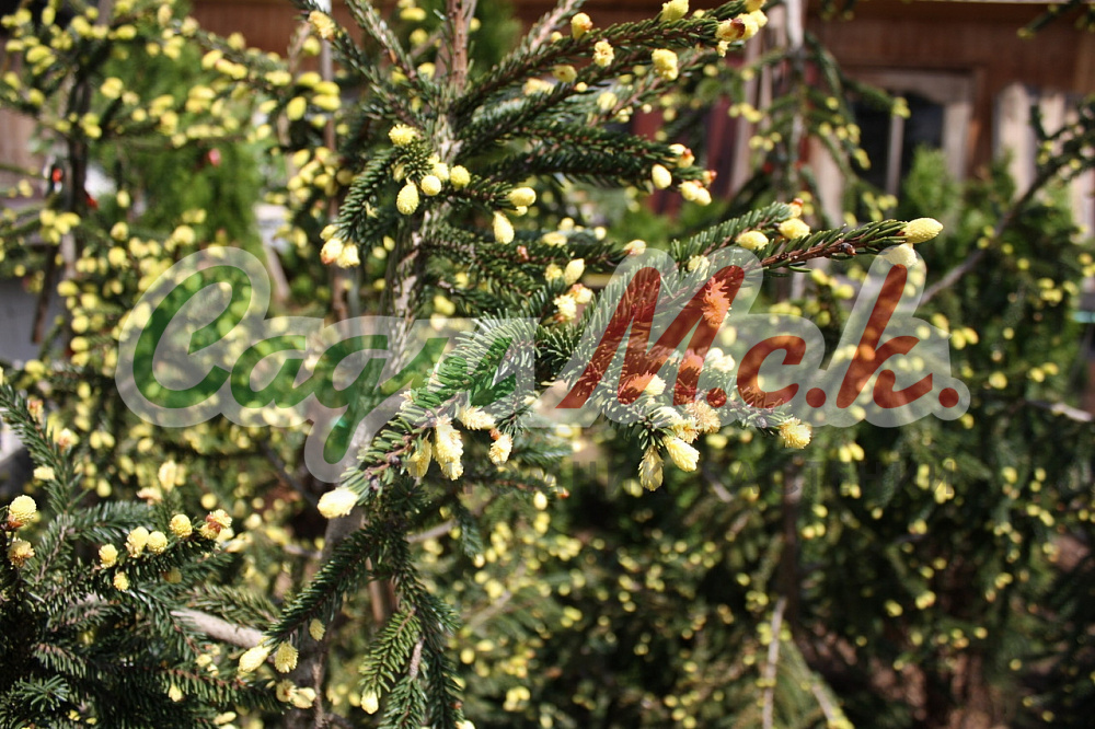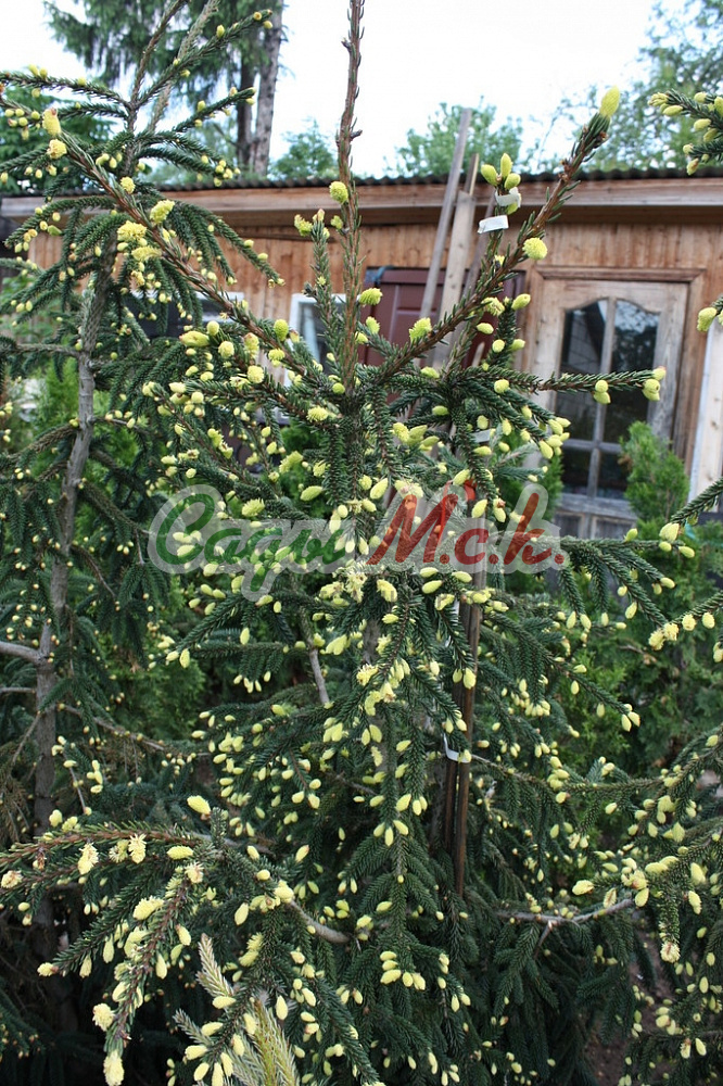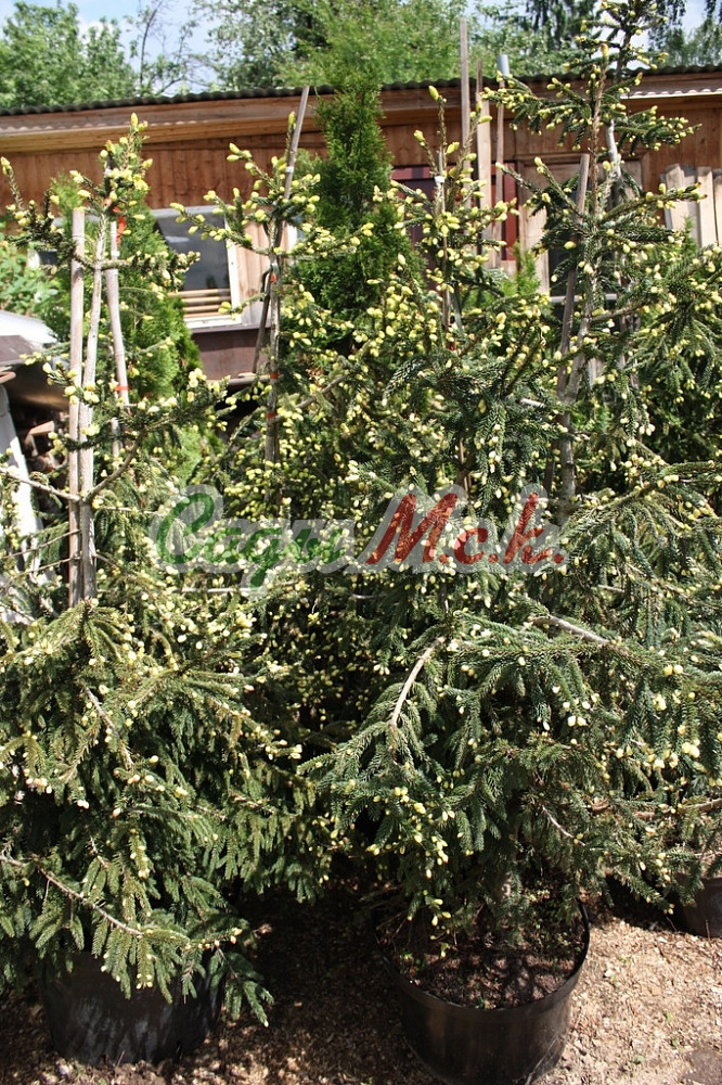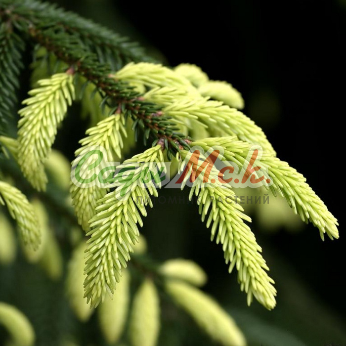 Ель восточная Aureospicata - хвойное вечнозеленое дерево конической формы. Крона плотная. Взрослая ель может достигать высоты 8-12 м и ширины 5 м. В возрасте 30 лет достигает 6-8 м высоты. В 10 лет высота около 2,5 м и 1,5 м в диаметре. Сорт является самым декоративным представителем елей восточных благодаря ярко-желтым молодым приростам, которые появляются позднее чем у других сортов ели, в июне мясяце. Вырастая, приросты становятся зелеными. Хвоя короткая, темно-зеленая, блестящая. Иголки короткие, жесткие.