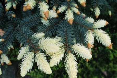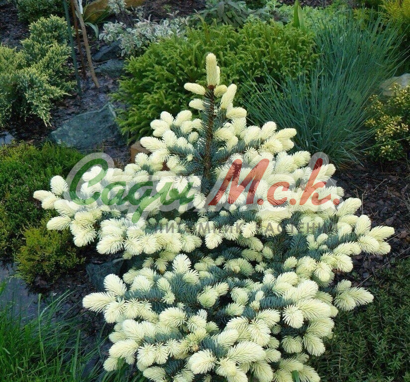 Медленнорастущее, декоративное деревце дает в год прирост около 15 см. Тем не менее, к 10 годам достигает 2 м в высоту, диаметр кроны – около 1 м. Крупномер колючий Bialobok особенно привлекателен весной, когда отрастают молодые побеги, покрытые лимонными, светло-салатовыми иголками, контрастирующими с темно-зеленой старой хвоей. Крона плотная, неправильной формы. Саженец предпочитает открытые, солнечные участки или полутень. Деревце используется в одиночных посадках.
