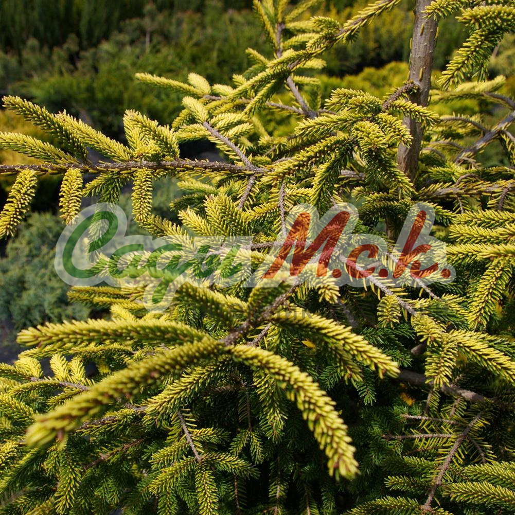 Ель восточная Skylands - дерево с пирамидальной кроной и короткой плотной хвоей, которая круглый год красуется золотистой окраской. Достигает 11 м в высоту и 2 м в ширину, но растет медленно - не более 8-15 см в год, а в молодом возрасте еще медленнее (в 10 лет может иметь высоту 1,6 м). Одна из самых популярных разновидностей ели.