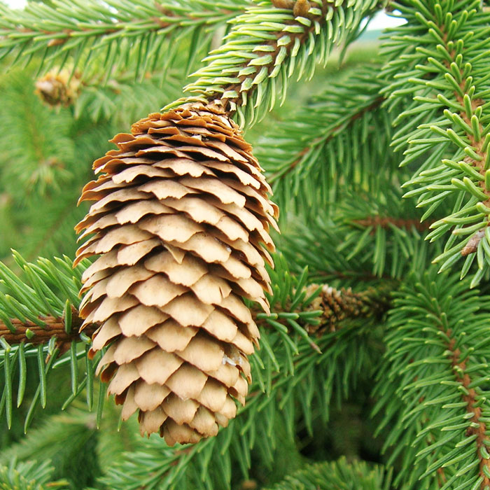 Вечнозеленая красавица вырастает высотой до 30 м, поэтому ее высаживают в основном в парках, хотя в одиночных посадках она уместно смотрится и в садах. Крупномер ели обыкновенной отличается пирамидальной формой кроны и мутовчатым ветвлением. Побеги покрыты густой, жесткой и колючей хвоей темно-зеленого цвета. Ель выдерживает сильные морозы, неприхотлива в выращивании. Саженцы хорошо приживаются на открытых солнечных участках и в полутени. Дерево переносит засуху, не терпит переувлажнения.