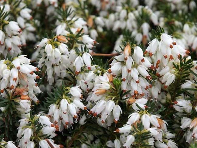 Эрика Isabell - высота плотного и широкого куста 15—20 см, диаметр кроны 20—25 см. Листья ярко-зеленые, до 6 мм длиной. Цветки чисто-белые, крупные, собраны в соцветия. Эффектно смотрится в миникомпозициях вместе с карликовыми хвойными. Цветет обильно в апреле-мае.