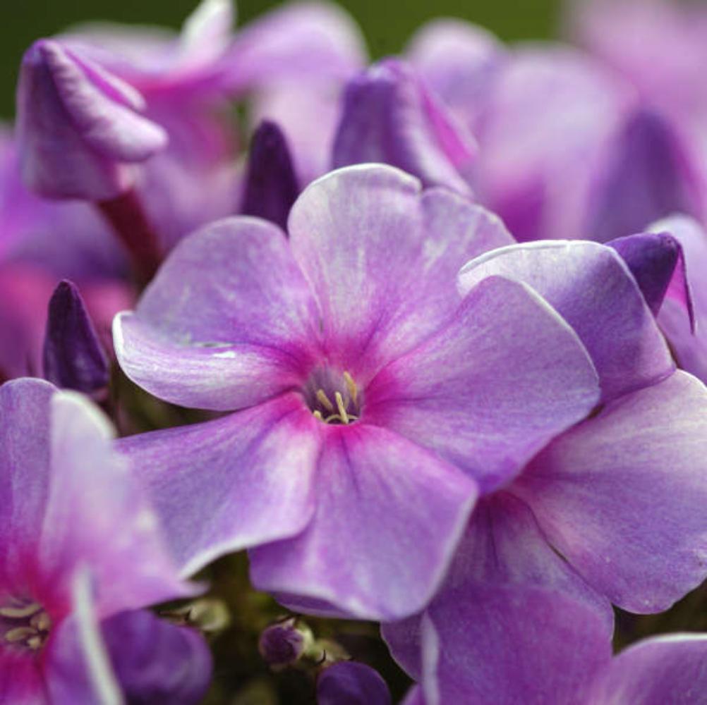 Метельчатый флокс Ending Blue сиренево-лиловый с пурпурным глазком и просветлением в центре. В сумерках более холодного оттенка. Бутоны лиловые, трубка пурпурная. Венчик волнистый. Соцветие округло-коническое. Куст прочный. Размер цветка 3.5 см. Высота куста 100 см. Срок цветения июль.