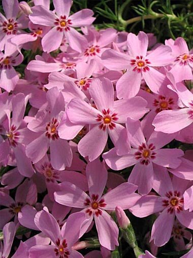Флокс шиловидный Марджори - многолетнее растение высотой около 15-20 см. Цветки розовые с малиновыми лучиками от центра. Лепестки узкие. Разрастается хорошо. Этот вид флоксов предпочитает рыхлые, водопроницаемые умеренно влажные почвы. Грунт для посадки готовят с добавлением песка или очень мелкого гравия. Хорошо чувствуют себя на рыхлых, бедных, сухих почвах. Растение требует открытого солнца. При недостатке света не цветёт, слабеет и может погибнуть. Не выносит застоя воды. Погибает от подтопления талыми водами или во время продолжительных оттепелей, в связи с чем стоит высаживать на возвышенных местах или на склоне. В сухую и жаркую погоду нуждается в поливах.