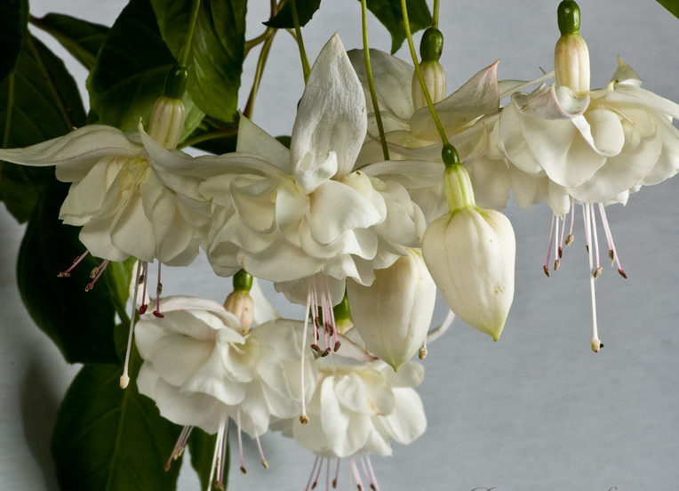 Фуксия Вайт Галор - одна из самых необычных фуксий. Ее необычная способность менять окрас чашелистиков просто завораживает.