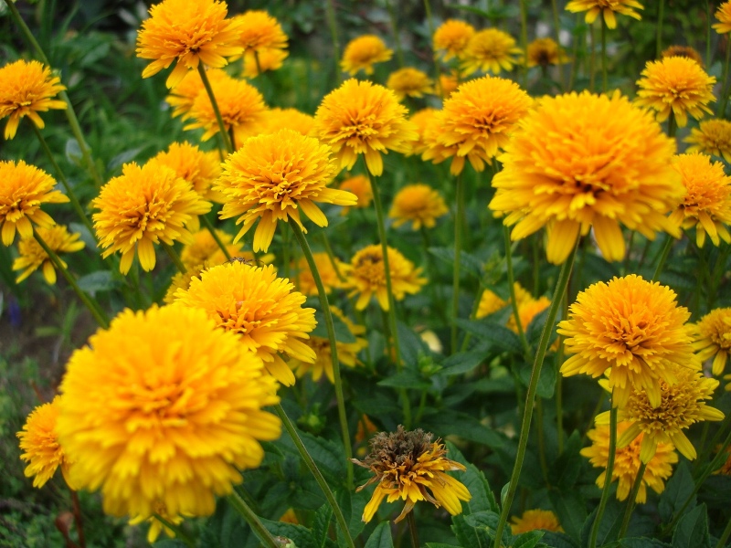 Гелиопсис подсолнечниковидный Асахи (Asahi Heliopsis helianthoides) поможет украсить любой участок, украсить зону вдоль заборов или стен. Данный сорт отличается небольшим ростом (до 60-80 сантиметров) и красивыми густомахровыми бутонами с чуть заметной серединкой или вовсе без нее. Цветы похожи на огненные шары, которые раскрываются в середине лета и продолжают цвести до конца сентября. Растение неприхотливое, предпочитает солнечные участки, не требовательно к поливу, прекрасно справляется с длительной засухой, лишь незначительно уменьшая размер и количество бутонов.