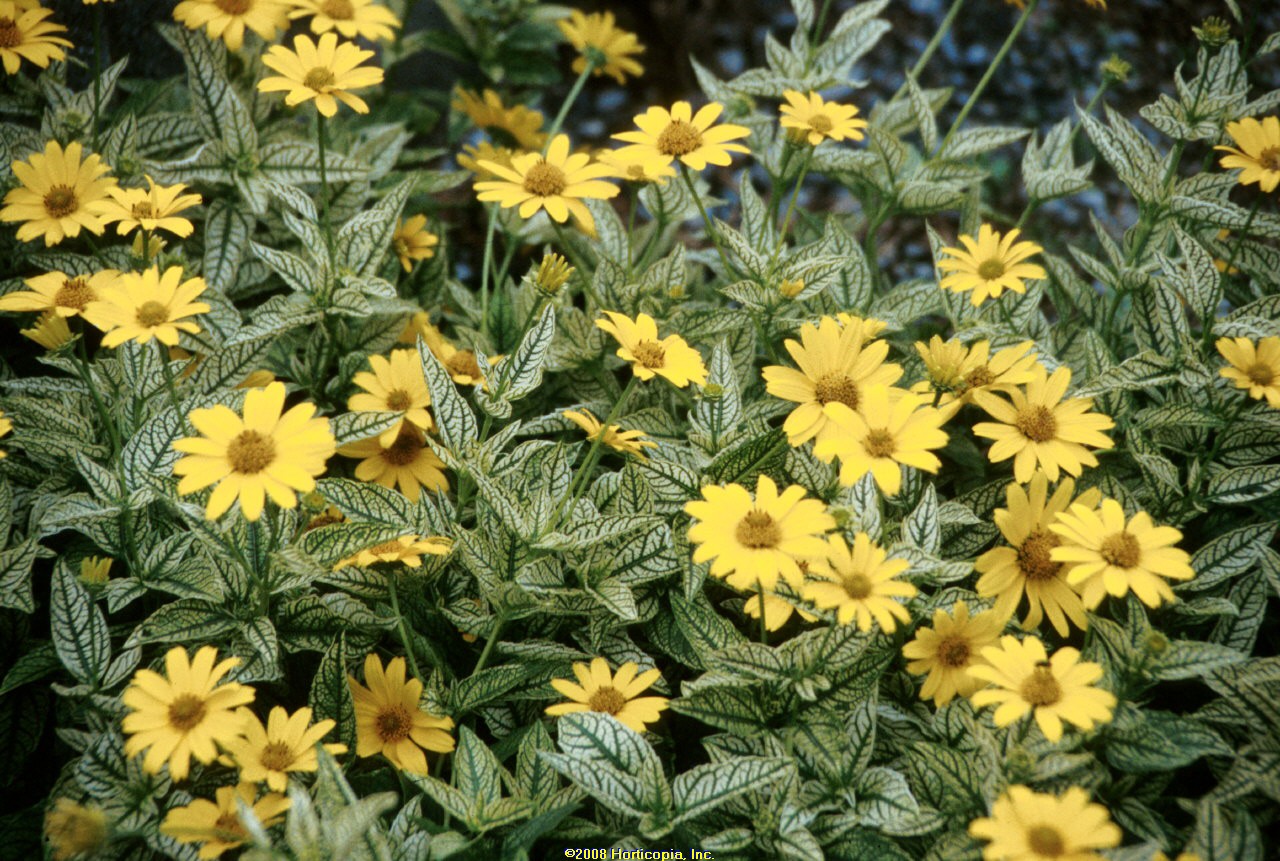 Гелиопсис подсолнечниковидный Лорэйн Саншайн/Loraine Sunshine позволяют вырастить эффектное растение высотой до 70 сантиметров с роскошными широкими листьями, светло-зеленая поверхность которых украшена темными прожилками. Этот сорт красиво смотрится в одиночных посадках и смешанных композициях. В июле Гелиопсис подсолнечниковидный Loraine Sunshine начинает цвести. В это время распускаются небольшие цветы с желтыми лепестками. Цветение длится до наступления осенних заморозков. Для посадки растения можно выбирать хорошо освещенные участки или легкую полутень.